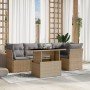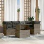 Set de sofás de jardín 6 piezas y cojines ratán sintético negro