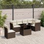 Set de sofás de jardín 7 pzas con cojines ratán PE gris claro