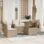 Set de sofás de jardín 6 piezas y cojines ratán sintético negro