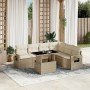 Juego de sofás de jardín 7 piezas con cojines ratán PE marrón