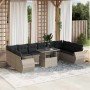 Set de sofás de jardín 11 pzas y cojines ratán sintético gris