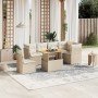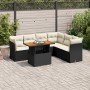 Set de comedor de jardín 7 pzas y cojines ratán sintético negro