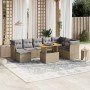Set de sofás de jardín 9 pzas con cojines ratán sintético beige