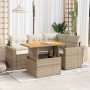 Juego de sofás jardín con cojines 5 pzas ratán sintético beige