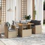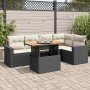 Set de sofás de jardín 6 piezas y cojines ratán sintético negro