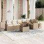 Set sofás de jardín 7 piezas y cojines ratán sintético beige