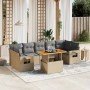 Set de sofás de jardín 8 pzas y cojines ratán sintético gris