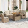Set de comedor de jardín 7 pzas y cojines ratán sintético negro