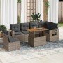 Set sofás de jardín 7 piezas y cojines ratán sintético beige
