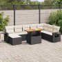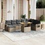 Set de sofás de jardín 9 pzas con cojines ratán sintético beige