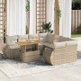 Set de sofás de jardín 9 pzas con cojines ratán sintético beige
