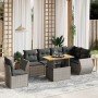 Set de comedor de jardín 7 pzas y cojines ratán sintético negro