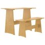 Mesa de comedor con banco REINE madera de pino marrón blanco
