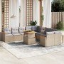 Set de sofás de jardín 11pzas con cojines ratán sintético beige