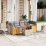 Set de sofás de jardín 7 piezas con cojines ratán PE gris