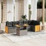 Set de comedor de jardín 7 pzas y cojines ratán sintético negro