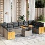 Set de sofás de jardín 11pzas con cojines ratán sintético beige