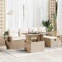 Juego de sofás jardín con cojines 6 pzas ratán sintético beige