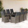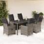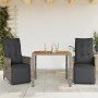 Mesita y sillas jardín 3 pzas y cojines ratán sintético gris