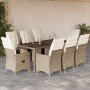 Set de mesa y sillas de jardín 7 pzas y cojines ratán PE beige