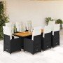 Set de mesa y sillas de jardín 7 pzas y cojines ratán PE negro