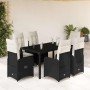 Mesita y sillas jardín 5 pzas y cojines ratán sintético negro
