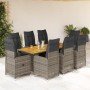 Mesita y sillas jardín 3 pzas y cojines ratán sintético gris