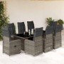 Mesita y sillas jardín 9 piezas y cojines ratán sintético gris