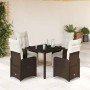 Set de mesa y sillas jardín 7 pzas con cojines ratán PE marrón