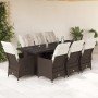 Set de mesa y sillas de jardín 11 pzas y cojines ratán PE beige