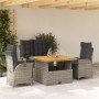Set comedor de jardín 3 piezas con cojines ratán sintético gris