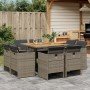Set comedor de jardín 11 pzas y cojines ratán sintético marrón