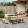 Set de comedor jardín 11 pzas con cojines ratán sintético negro