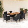 Set de comedor jardín 5 pzas con cojines ratán PE acacia negro