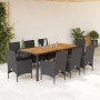 Set de comedor jardín 7 pzas con cojines ratán PE acacia negro