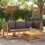 Conjunto de sofá de jardín de 5 piezas con cojines de madera de acacia y ratán