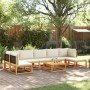 Conjunto de sofá de jardín de 6 piezas con cojines de madera de acacia y ratán