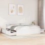 ¡Añade un toque moderno a tu dormitorio con esta estructura de cama con cajones! Es un aporte práctico y decorativo para tu hogar. Estructura estable y duradera: La madera de pino maciza es conocida por su resistencia y durabilidad. Sus vetas rectas y sus característicos nudos contribuyen a su encanto rústico.Listones robustos: Los listones de madera contrachapada proporcionan una buena distribución del peso, lo que garantiza que el colchón se mantenga en tu sitio con cada giro y vuelta del cuerpo mientras duermes.Función de almacenaje: Los cajones de cama incluidos proporcionan amplio espacio de almacenamiento para guardar cosas básicas, y mantienen la habitación limpia y ordenada.Cabecero versátil: Esta estructura de cama viene con un cabecero que proporciona un excelente soporte para la espalda cuando te sientas en la cama para leer o ver la televisión, a la vez que sirve como elemento decorativo. Información útil:El colchón no está incluido con la cama. Disponemos de una variada selección de colchones. Puedes echar un vistazo a nuestra tienda para buscar el colchón correspondiente.