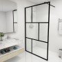 ¡Da una estética fresca a tu baño con esta moderna mampara de ducha con vidrio ESG! Material de primera calidad: La mampara de ducha tiene un vidrio de seguridad ESG de 5 mm de grosor y se apoya en una estructura de aluminio. Así, puedes estar seguro de que la estructura se mantiene fuerte una vez montada.Tamaño ajustable: El perfil ajustable y la barra de soporte flexible facilitan la adaptación a cualquier tamaño y disposición de baño.Fácil de limpiar: La mampara de ducha es fácil de limpiar. ¡Lo único que tienes que hacer es limpiar las molestas manchas de agua!