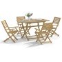¡Disfruta de una buena comida o cena en el espacio al aire libre de tu casa con este juego de comedor de madera para jardín! Madera maciza de acacia: El juego de comedor de exterior está hecho de madera maciza de acacia para mayor robustez y estabilidad. La madera maciza de acacia es un bonito material natural. La madera de acacia tiene una veta recta y los nudos le dan al material su estilo rústico característico.Experiencia de asiento cómoda: Con respaldo, la silla de exterior brinda la máxima comodidad.Diseño de listones: El diseño de listones del juego de comedor de patio evita la acumulación de agua, manteniendo el asiento seco y evitando que se pudra innecesariamente.Superficie estable: La mesa de exterior ofrece un soporte excelente para bebidas, aperitivos, fruteros y tus adornos favoritos.Diseño plegable: La mesa y las sillas de comedor al aire libre se pueden plegar fácilmente cuando no se utilicen y para facilitar su almacenamiento y transporte. Información útil:Para asegurarte de que tus muebles de exterior se mantengan hermosos, recomendamos protegerlos con una funda impermeable.
