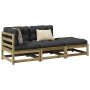 Set de sofás de jardín 3 pzas con cojines madera maciza de pino