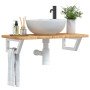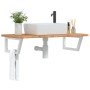Estante de lavabo de pared de acero y madera maciza de roble
