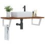 El estante de lavabo montado en la pared se fija de forma segura a la pared, proporcionando una solución elegante y que ahorra espacio para tu baño. Robusto y duradero: Este estante de lavabo se combina con una estructura de acero y una superficie de madera maciza de roble, lo que lo hace resistente, estable y duradero. Ahorro de espacio: El estante de lavabo flotante tiene un amplio espacio para almacenar cremas y artículos pequeños. Gracias a la forma trapezoidal, puedes colgar toallas u otras cosas en el soporte para ahorrar espacio. Fácil de usar: La encimera viene sin perforar para permitir que el lavabo se monte a la izquierda, a la derecha o en el centro, según los requisitos de la habitación. Gracias a los orificios pretaladrados en el soporte, se puede montar fácilmente con el tablero y montar en la pared. Diversos usos: Gracias a su diseño moderno, proporciona espacio adicional para varios tipos de baños. Información útil:Los tornillos no están incluidos, puedes comprar los tornillos por separado según la información que se proporciona a continuación. Fijación a la pared: 2 tornillos de expansión M8 por soporte Tabla de madera: 2 tornillos M5x18 (T=2) o 2 tornillos M5x20 (T=2,5/4cm) por soporte