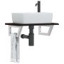 El estante de lavabo montado en la pared se fija de forma segura a la pared, proporcionando una solución elegante y que ahorra espacio para tu baño. Robusto y duradero: Este estante de lavabo se combina con una estructura de acero y una superficie de madera maciza de roble, lo que lo hace resistente, estable y duradero.Ahorro de espacio: El estante de lavabo flotante tiene un amplio espacio para almacenar cremas y artículos pequeños. Gracias a la forma trapezoidal, puedes colgar toallas u otras cosas en el soporte para ahorrar espacio.Fácil de usar: La encimera viene sin perforar para permitir que el lavabo se monte a la izquierda, a la derecha o en el centro, según los requisitos de la habitación. Gracias a los orificios pretaladrados en el soporte, se puede montar fácilmente con el tablero y montar en la pared.Diversos usos: Gracias a su diseño moderno, proporciona espacio adicional para varios tipos de baños. Información útil:Los tornillos no están incluidos, puedes comprar los tornillos por separado según la información que se proporciona a continuación.Fijación a la pared: 2 tornillos de expansión M8 por soporteTabla de madera: 2 tornillos M5x18 (T=2) o 2 tornillos M5x20 (T=2,5/4cm) por soporteAl ser un producto natural, la madera puede presentar nudos e imperfecciones que rellenamos con rellenos para garantizar un aspecto liso.