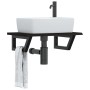 Estante de lavabo de pared de acero y madera maciza de roble