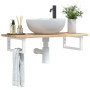 Estante de lavabo de pared acero y madera maciza de acacia