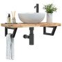 El estante de lavabo montado en la pared se fija de forma segura a la pared, proporcionando una solución elegante y que ahorra espacio para tu baño. Robusto y duradero: Este estante de lavabo se combina con una estructura de acero y una tabla de madera de acacia maciza, lo que lo hace robusto, estable y duradero.Ahorro de espacio: El estante de lavabo flotante tiene un amplio espacio para almacenar cremas y artículos pequeños. Gracias a la forma trapezoidal, puedes colgar toallas u otras cosas en el soporte para ahorrar espacio.Fácil de usar: La encimera viene sin perforar para permitir que el lavabo se monte a la izquierda, a la derecha o en el centro, según los requisitos de la habitación. Gracias a los orificios pretaladrados en el soporte, se puede montar fácilmente con el tablero y montar en la pared.Diversos usos: Gracias a su diseño moderno, proporciona espacio adicional para varios tipos de baños. Información útil:Los tornillos no están incluidos, puedes comprar los tornillos por separado según la información que se proporciona a continuación.Fijación a la pared: 2 tornillos de expansión M8 por soporteTabla de madera: 2 tornillos M5x18 (T=2) o 2 tornillos M5x20 (T=2,5/4cm) por soporte