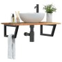 El estante de lavabo montado en la pared se fija de forma segura a la pared, proporcionando una solución elegante y que ahorra espacio para tu baño. Robusto y duradero: Este estante de lavabo se combina con una estructura de acero y una tabla de madera de acacia maciza, lo que lo hace robusto, estable y duradero.Ahorro de espacio: El estante de lavabo flotante tiene un amplio espacio para almacenar cremas y artículos pequeños. Gracias a la forma rectangular, puedes colgar toallas u otras cosas en el soporte para ahorrar espacio.Fácil de usar: La encimera viene sin perforar para permitir que el lavabo se monte a la izquierda, a la derecha o en el centro, según los requisitos de la habitación. Gracias a los orificios pretaladrados en el soporte, se puede montar fácilmente con el tablero y montar en la pared.Diversos usos: Gracias a su diseño moderno, proporciona espacio adicional para varios tipos de baños. Información útil:Los tornillos no están incluidos, puedes comprar los tornillos por separado según la información que se proporciona a continuación.Fijación a la pared: 2 tornillos de expansión M8 por soporteTabla de madera: 2 tornillos M5x18 (T=2) o 2 tornillos M5x20 (T=2,5/4cm) por soporte