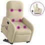 ¡Siéntate y descansa en este comodísimo sillón reclinable de masaje elevable! Función de elevación eléctrica: Este sillón reclinable para las personas mayores está equipado con un motor eléctrico para la función de elevación. Gracias a la función de elevación que empuja el sillón hacia arriba por completo, te puedes levantar fácilmente, sin tensiones en la espalda y las rodillas, con sólo pulsar el botón.Función de reclinado manual: Este sillón reclinable tiene un mango en el lado derecho. Con sólo tirar de él, puedes ajustar manualmente el reposapiés y el respaldo a cualquier posición que te resulte cómoda. Esta función permite una inclinación máxima de 135 grados. Además, el respaldo vuelve rápidamente a su posición original con solo tirar del mango.Función de vibración: Los 6 puntos de masaje te harán disfrutar de un masaje mejor enfocado. Además, el mando incluido te permite elegir diferentes programas de masaje. La función de masaje funciona a través del conector USB que requiere una fuente de alimentación USB de 5 V certificada (no incluida).Cómodo asiento: El mullido asiento , el respaldo y los amplios reposabrazos cubiertos de tela proporcionan una sensación cómoda y acogedora, para que estés de maravilla mientras estás sentado. La tela posee un aspecto sencillo y limpio, y es transpirable y duradera.Práctico bolsillo lateral: Este sillón cuenta con un bolsillo lateral para guardar el mando a distancia o mantener tus cosas al alcance de la mano.Estructura maciza y estable: La estructura, hecha de madera y metal, proporciona una estructura y una estabilidad fuertes. Este sillón reclinables es cómodo y duradero.