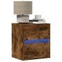 Mesitas de noche de pared con luces LED 2 unidades negro